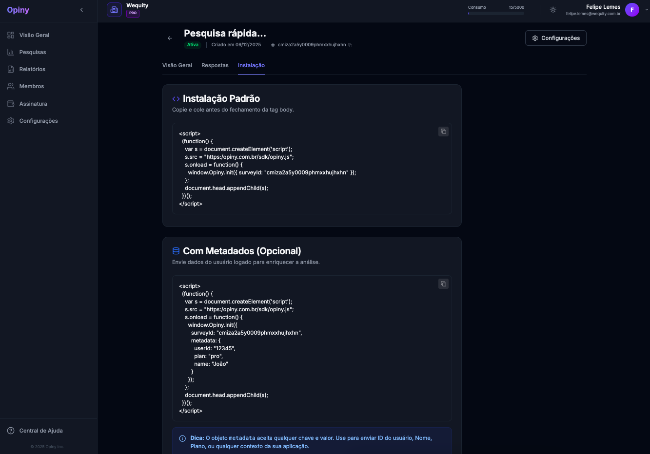 - Configuração de Metadados: Exemplos de como identificar seus usuários logados para que o nome e e-mail deles apareçam nos resultados.